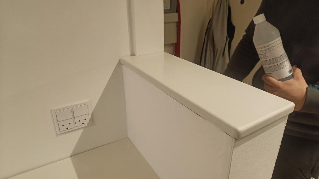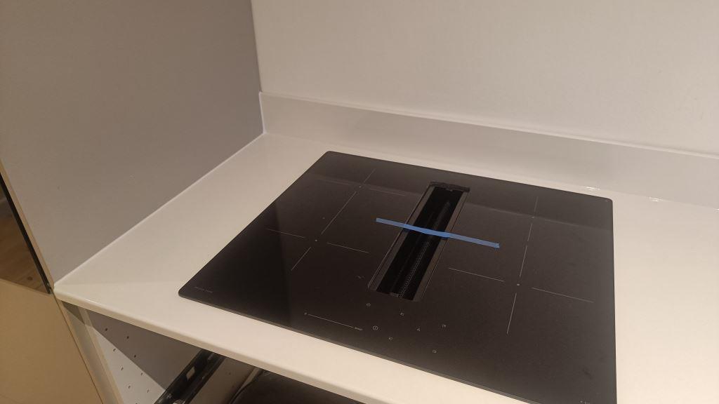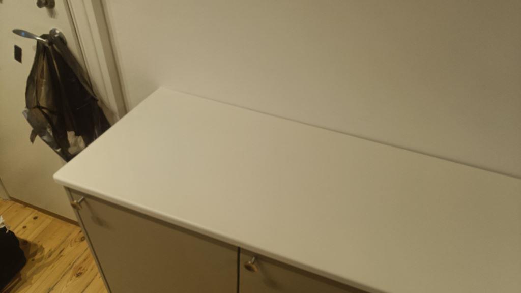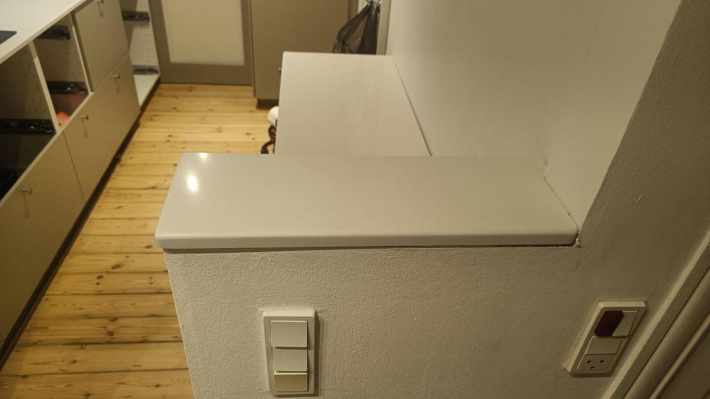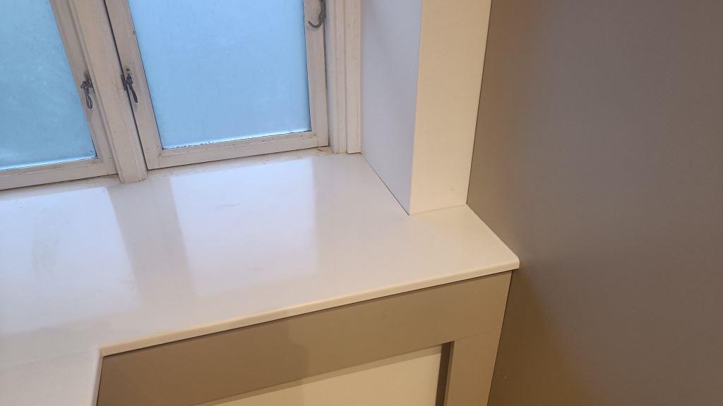 Nyt projekt afsluttet. Montering. Måling. Sten: Silestone Miami White - 20mm Polerad,Silestone Miami White - 12mm Polerad.