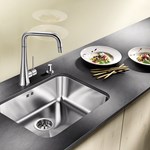 Integrerad disklåda av rostfritt stål för undermontering. 3½'' avlopp med korgvent